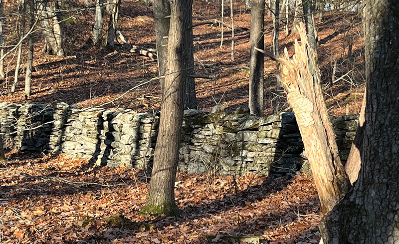 Several days later, on a frigid morning at about 8:30 a.m., I returned with my little poodle, Talley. Tethered by leash, we walked into the woods and stepped over the railroad tracks onto the long-ago driveway-now-turned-to-wide-path. We climbed over a giant flattish rock in the path. I looked left to see if the stream was running yet.