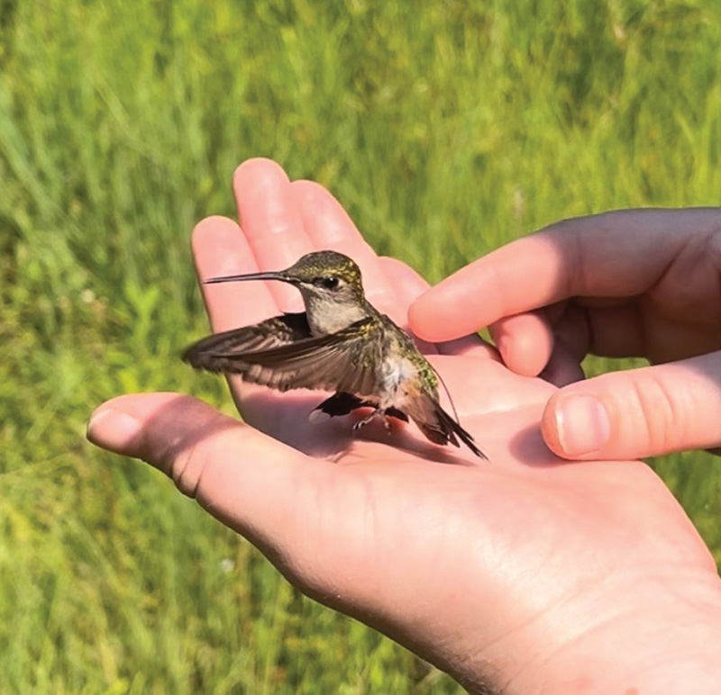 After the team finished processing the hummingbird and attaching a tiny metal identification band around its leg engraved with a letter and a few numbers, one young spectator was treated to a rare thrill: she held the little bird for a few wondrous moments and then set it free.