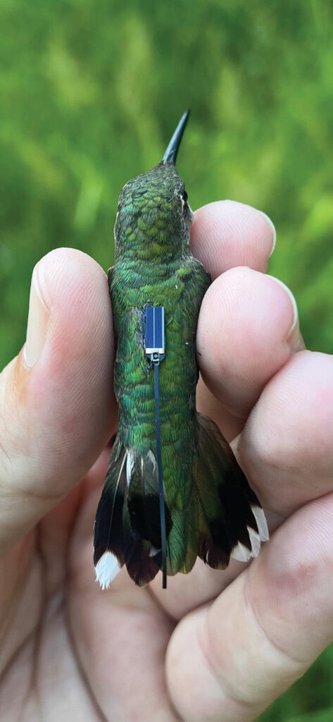 since 2023, attached to a ruby-throated hummingbird. Photo: Kyle Shephard